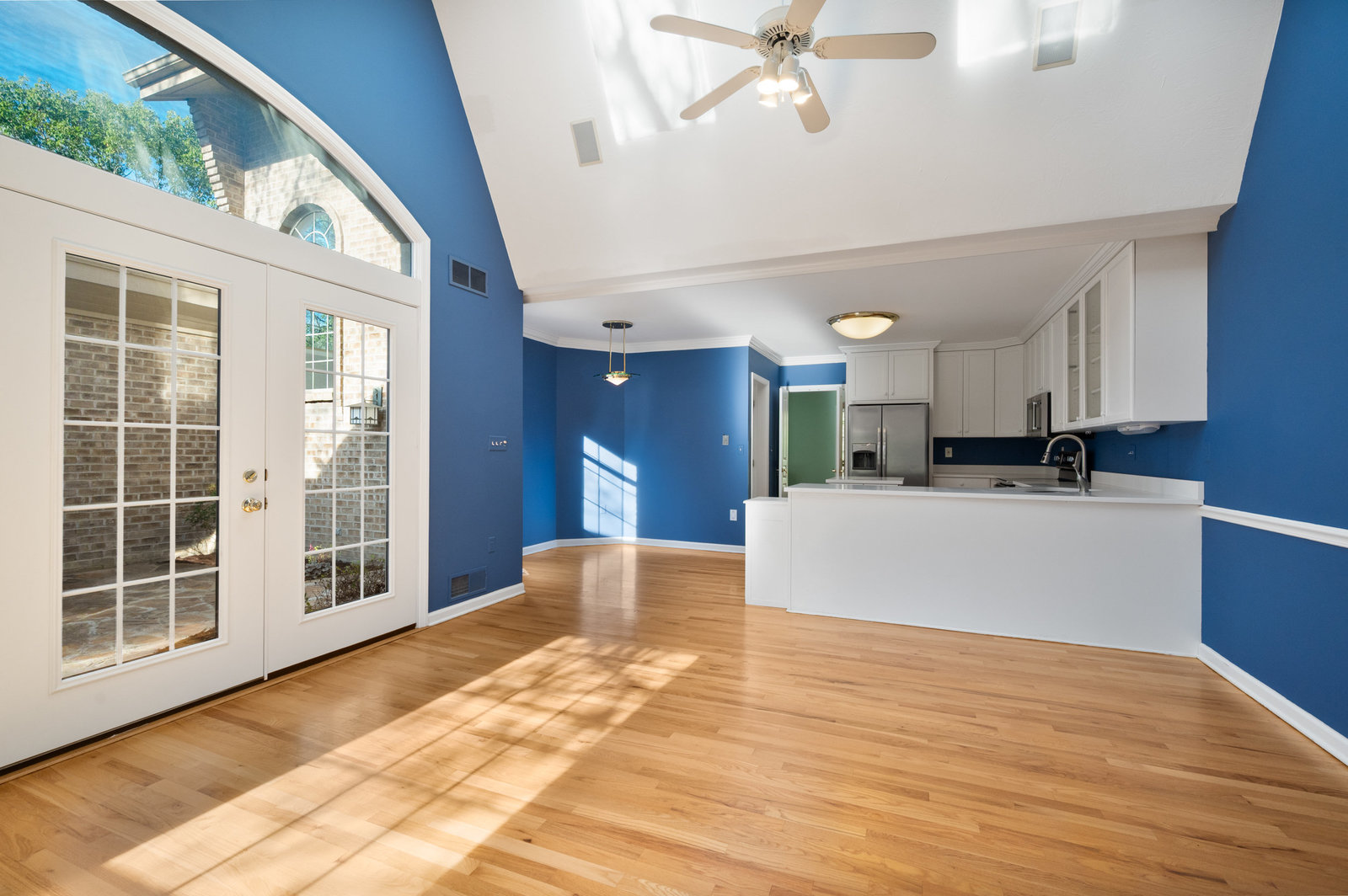 Bright & airy end-unit condominium in Fox Hall delivers three bedrooms, three full baths, and two and a half baths across 2,800 square feet of versatile living space. This three-story residence with a two-car garage opens through a private courtyard into a marble entry, unfolding to a formal living room & a combined kitchen/family room where hardwood floors, vaulted ceilings with skylights, & custom built-ins create a sophisticated & comfortable atmosphere. French doors in the family room open to the courtyard, seamlessly connecting the first floor with indoor-outdoor living. The second floor features a primary suite with a spa-like bath & private balcony, while the third floor offers a flexible den/office with a gas fireplace & separate air conditioning, paired with a spacious bedroom & ensuite bath. A finished lower level adds laundry, a bonus room with double closets, & half bath. Nestled at the quiet edge of Fox Hall, the home blends serenity with convenience—just minutes to shopping, dining, & direct access to Route 8, Route 28, and the Turnpike.